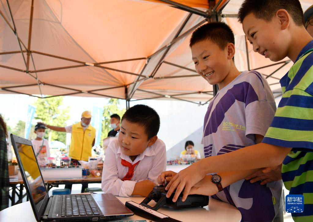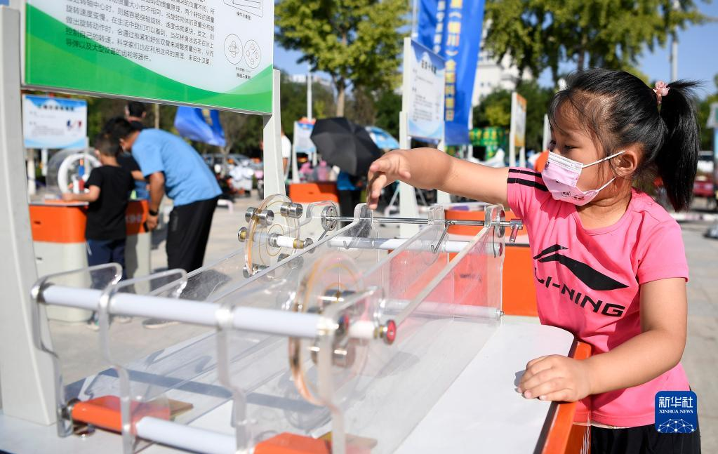 9月11日,小朋友在活动现场体验科技小装置。新华社记者 王鹏 摄