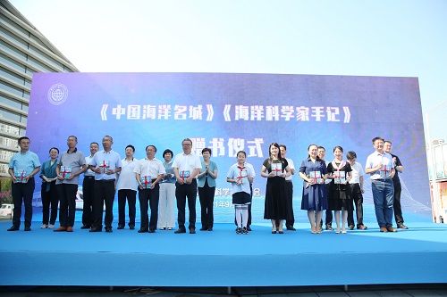 近年来,市科协积极发挥青岛海洋科普联盟的人才优势和联系作用,大力弘扬和践行科学家精神,组织出版海洋科普纪实著作——《海洋科学家手记》,以十余名海洋科学领域的科学家为视角,讲述科学探索和技术攻关中的故事和趣闻,分享他们对海洋科研的独特理解和深厚情怀。国务院最新颁布的《全民科学素质行动规划纲要(2021—2035年)》中,将青少年、农民、产业工人、老年人、领导干部作为公民科学素质重点行动五大人群。启动仪式现场举行了赠书仪式,为五大人群代表赠送《中国海洋名城》《海洋科学家手记》两套海洋科普书籍,拉近科学家与大众之间的距离,激发群众的科学兴趣和科学追求。