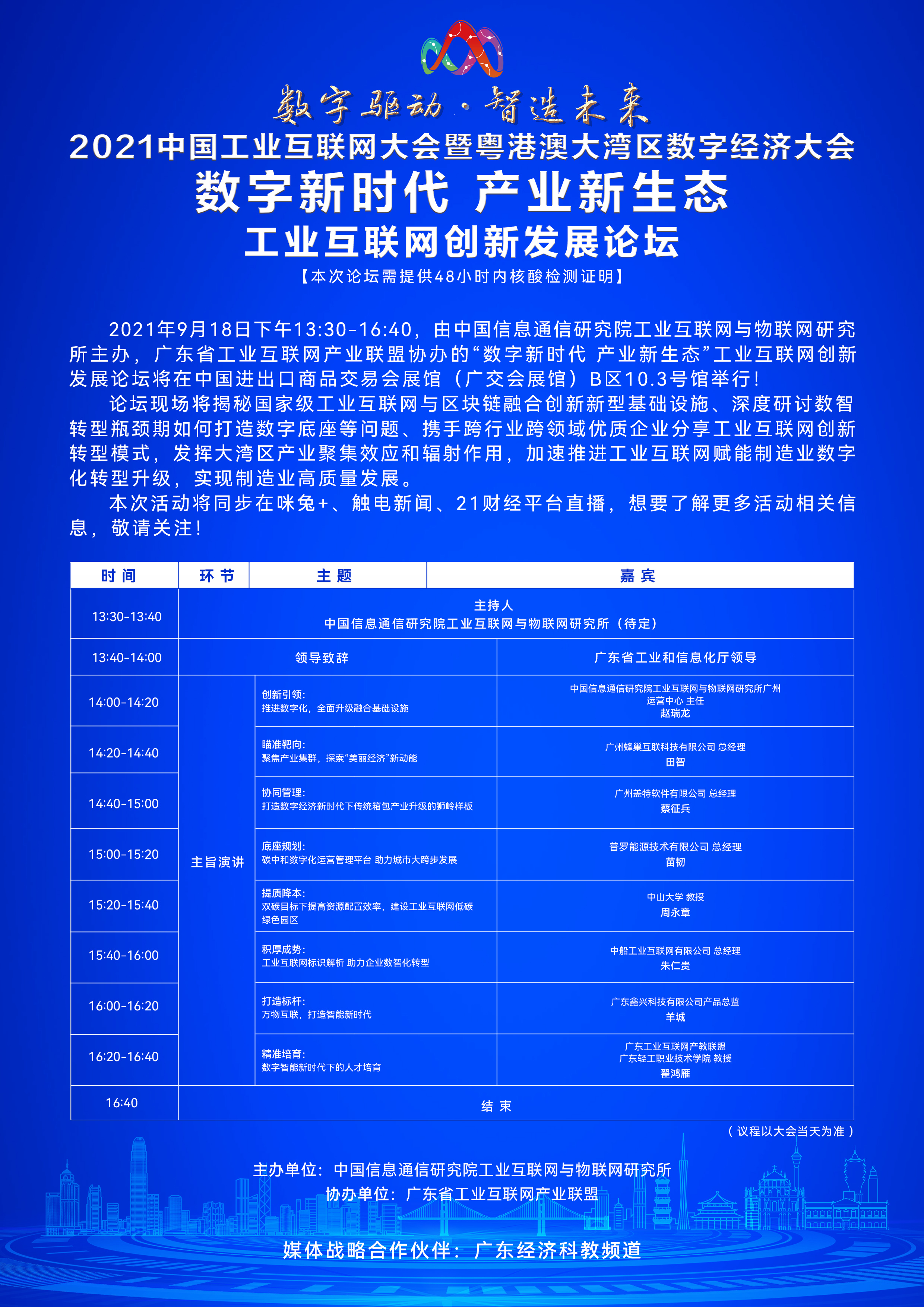 在此背景下,由中国信息通信研究院工业互联网与物联网研究所主办,广东省工业互联网产业联盟协办的2021中国数字经济大会粤港澳大湾区数字经济大会——“数字新时代,产业新生态”工业互联网创新发展论坛将于9月18日在广州举行。