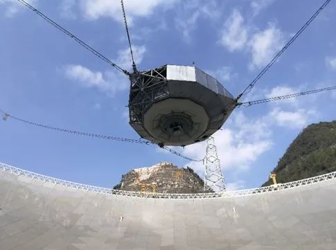 FAST团队采用光机电一体化技术,自主提出轻型索拖动馈源支撑系统和并联机器人,实现望远镜接收机的高精度指向跟踪,并将万吨平台降至几十吨。FAST的馈源舱有30吨重,被六条400多米的钢索吊起,移动范围达200米,内设世界最精密的接收器。为保证天眼正常运行,FAST周围半径30km的范围设为了电磁波宁静区。