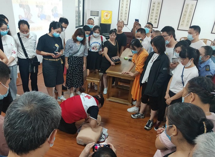 2021年9月7日至8日。营门口街道特别邀请到区红十字会徐老师,组织60余人街道干部职工、社区两委和辖区群众代表在花照壁社区开展了应急救护员现场培训。