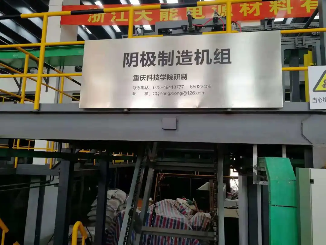 ▲近日,重庆科技学院研制的大极板铅电解自动化成套装备系统在国内最大的铅酸电池企业——浙江天能电池顺利全面投产。