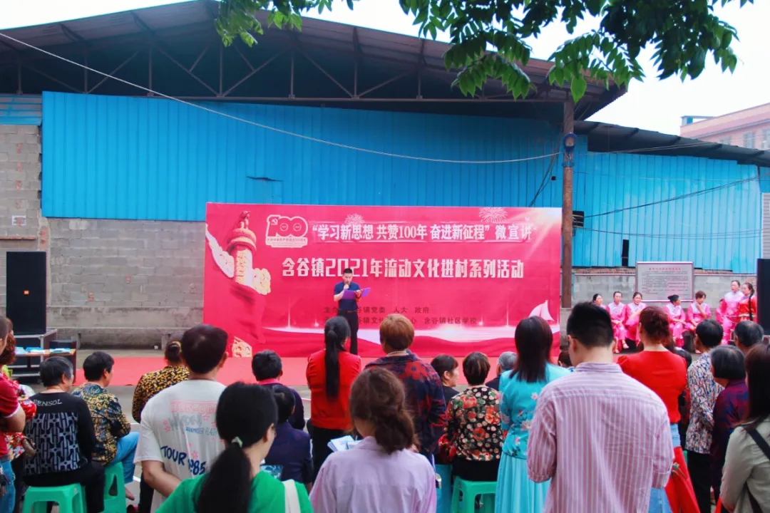 含谷镇开展“学习新思想 共赞100年 奋进新征程”微宣讲暨含谷镇2021年流动文化进村系列活动:活动中穿插党史知识互动环节,10余名民生政策宣传员进行“反诈”“非法集资”“农民工支付条例”宣传,发放宣传资料2000余份,收集意见建议20余条。