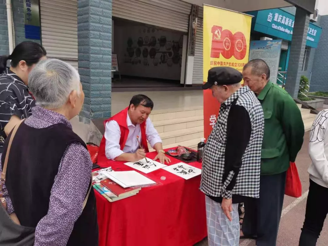 金凤镇开展“迎百年党庆 书法颂党恩”书法文化进社区活动:活动受到了居民们的热切欢迎,现场100余名群众收到了免费赠予的字幅和对联。