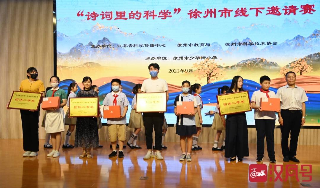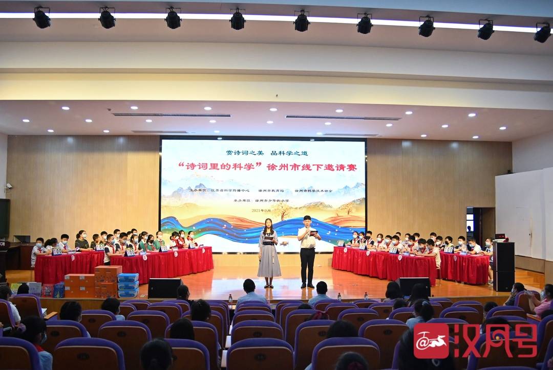 为加强优秀传统文化学习教育,提升青少年科学素养,培养科学精神,仪式结束后,市科协、市教育局联合省科学传播中心举办第二届“诗词里的科学”徐州市线下邀请赛。通过此前层层选拨,来自全市五区五县(市)12所小学的代表队现场一决高下。获得一等奖的代表队将代表徐州参加省“诗词里的科学”总决赛。