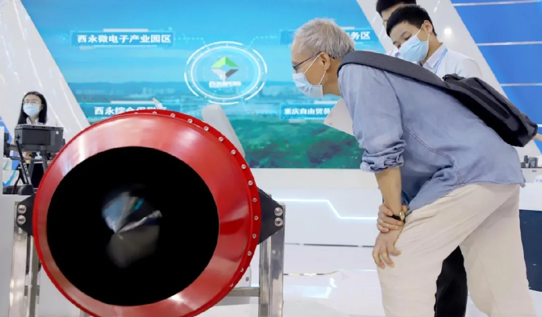 重庆大学产业技术研究院附属企业:重庆推重比动力科技有限公司展示了该企业研发的脉冲爆震发动机模型。