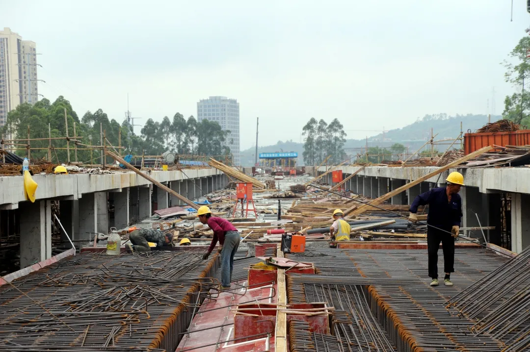 ▲建设中的轨道5号线(江跳线)九龙园站。雷键 摄