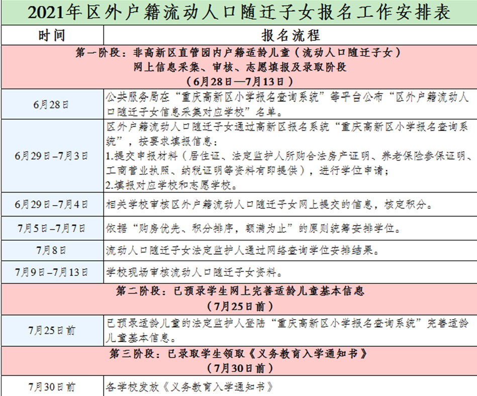 区外户籍流动人口随迁子女入读重庆高新区公办小学,如何申请学位?
