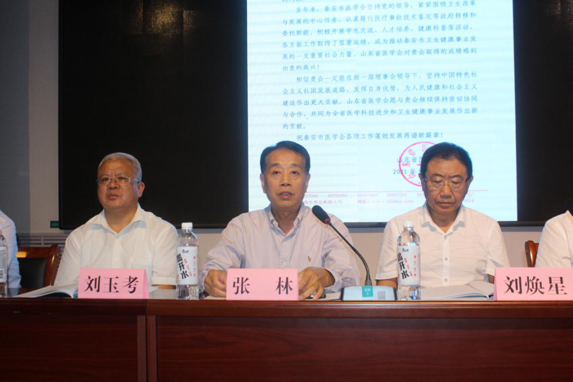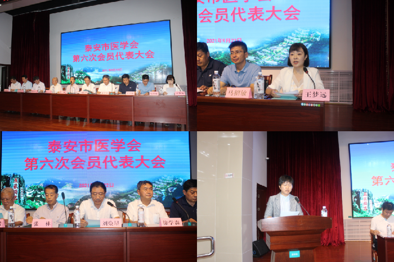 2021年9月22日,泰安市医学会第六次会员代表大会在泰安市泰山医养中心(泰安市中心医院碧霞湖院区)隆重召开。山东省医学会秘书长张林,市政协人口资源环境委主任、工作室一级调研员、泰安市医学会第五届理事会会长刘焕星,市科协党组成员、二级调研员刘玉考,泰安市卫生健康委员会党组成员、副主任、二级调研员、泰安市医学会第六次会员代表大会主席团主席徐学森等出席大会。会议由市卫生健康委医政药政科科长王梦远主持。市各级卫生健康行政部门、医疗机构有关领导和医学界专家业务骨干参加会议。