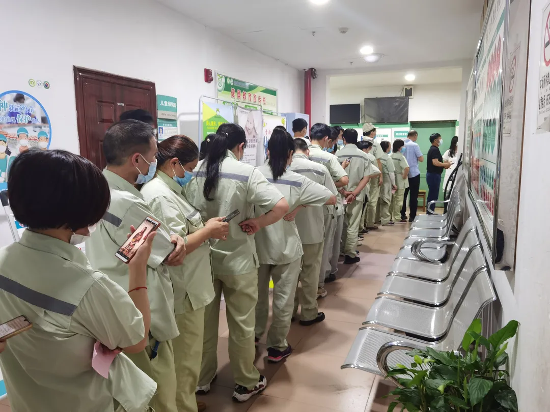 ▲企业员工排队接种。