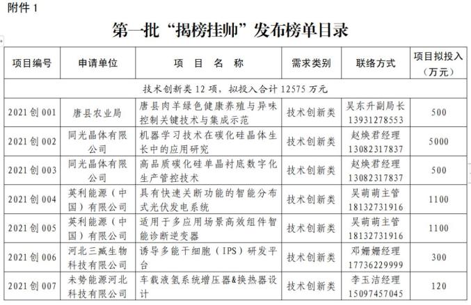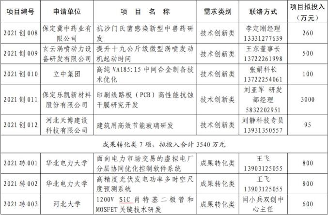 2.2021年保定市“揭榜挂帅”项目榜单榜单