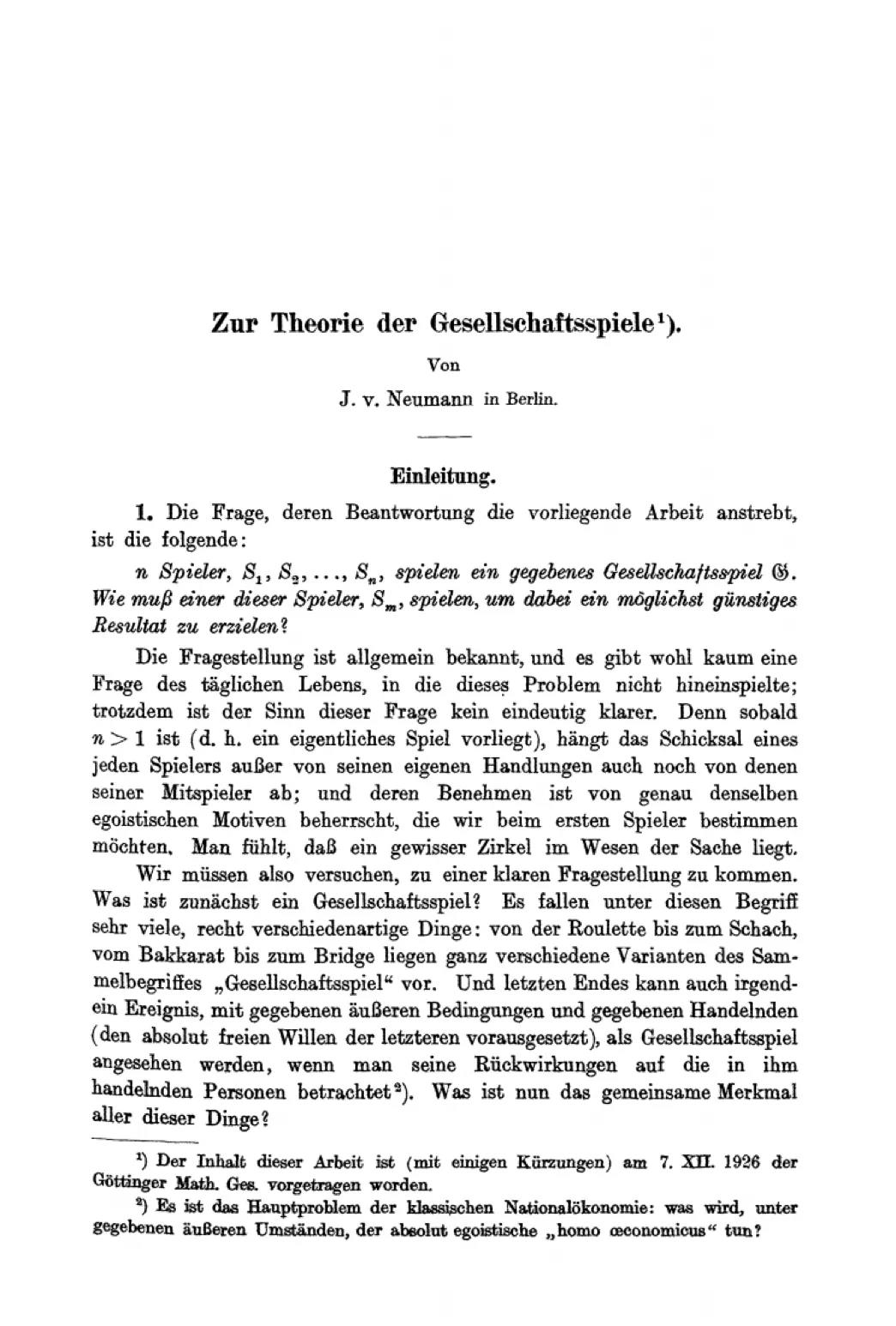 这一证明发表在1928年的Zur theororie der Gesellschaftsspiele(《战略博弈理论》)上。后来冯·诺伊曼与经济学家奥斯卡·摩根斯特恩合作,出版了关于这种合作的零和博弈的权威著作《博弈理论与经济行为》(Theory of games and Economic Behavior, 1944)。