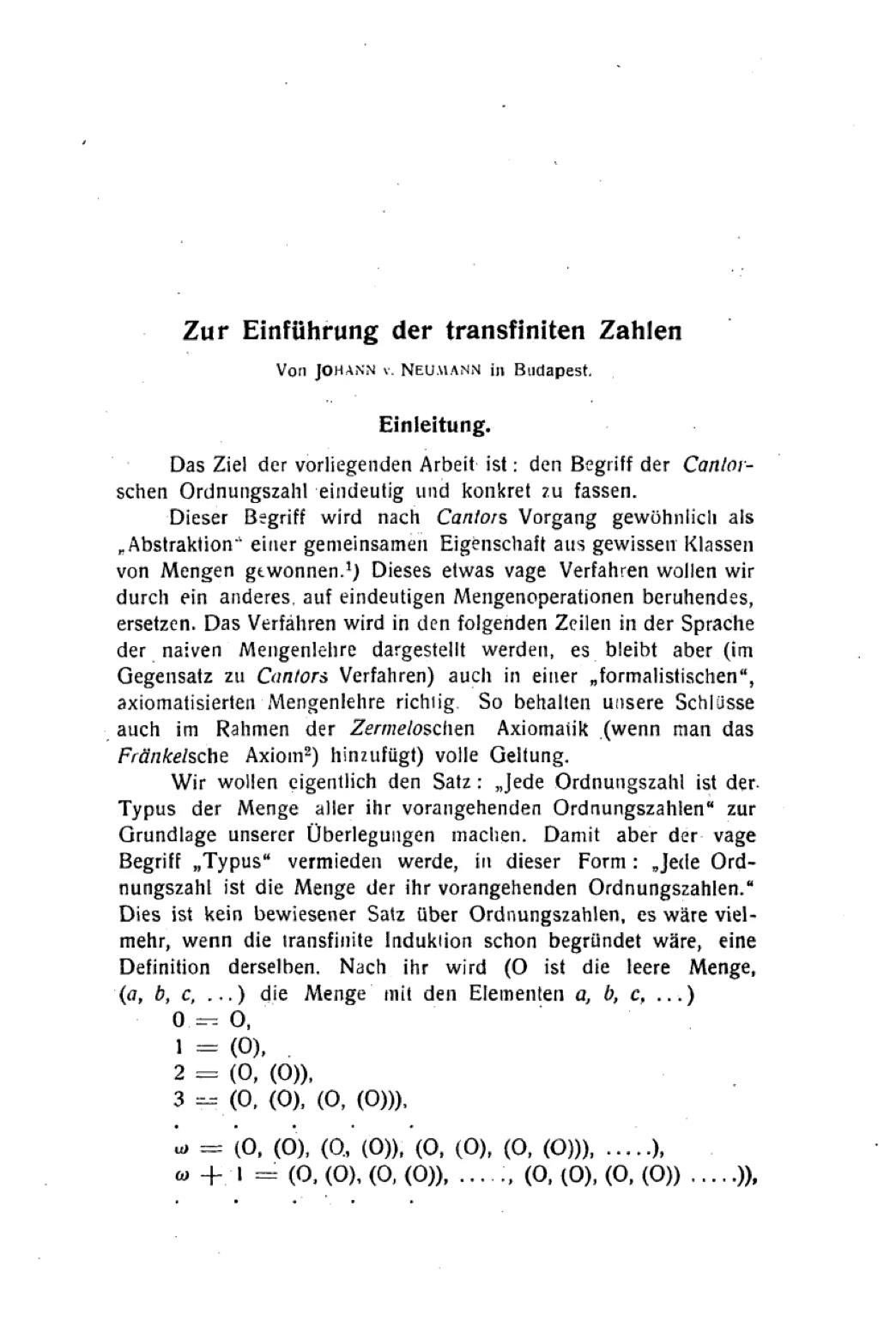 冯·诺伊曼1923年的论文。来源:Zur Einführung der transfiniten Zahlen Acta Litterarum ac Scientiarum Regiae Universitatis Hungaricae Francisco-Josephinae, sectio scientiarum mathematicarum, 1, pp. 199–208.