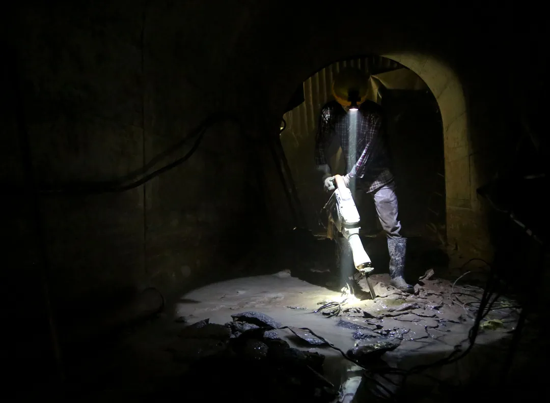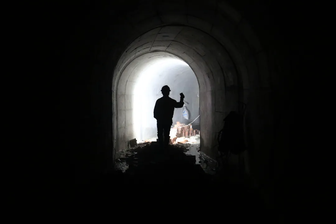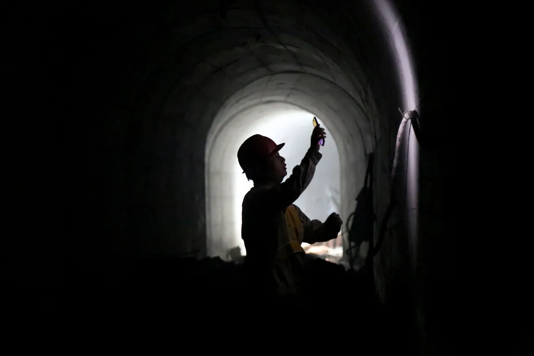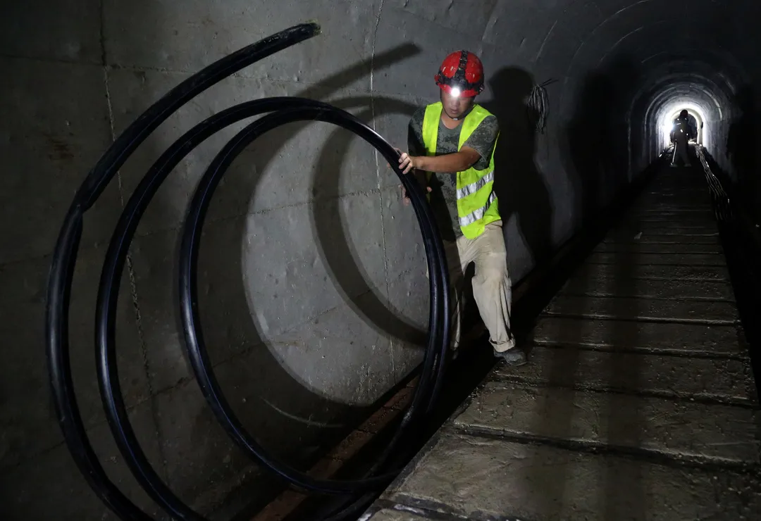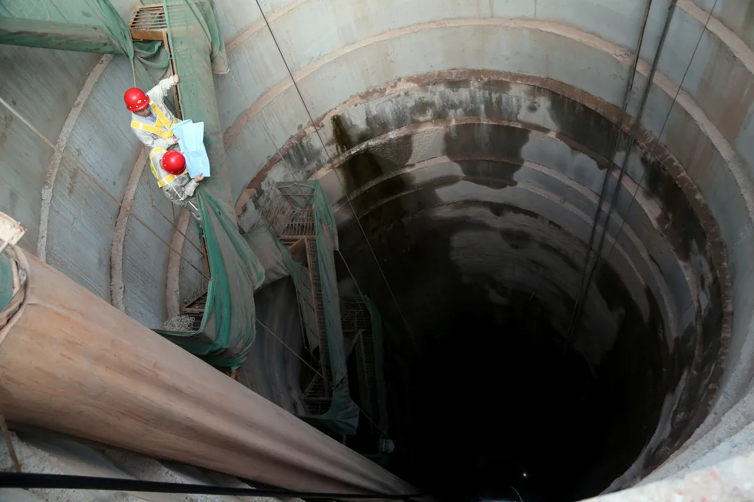 ▲施工现场,竖井深50多米,工人在井下施工。雷键 摄