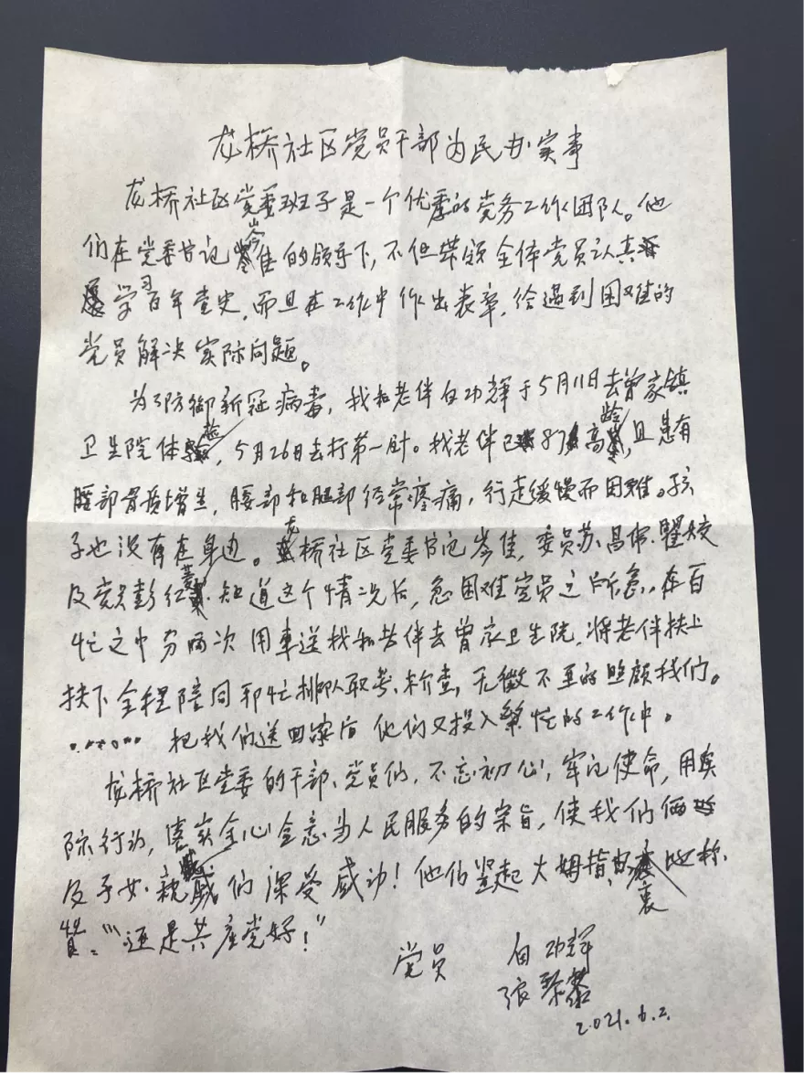 学党史·办实事 | 一封来自八旬老人的感谢信