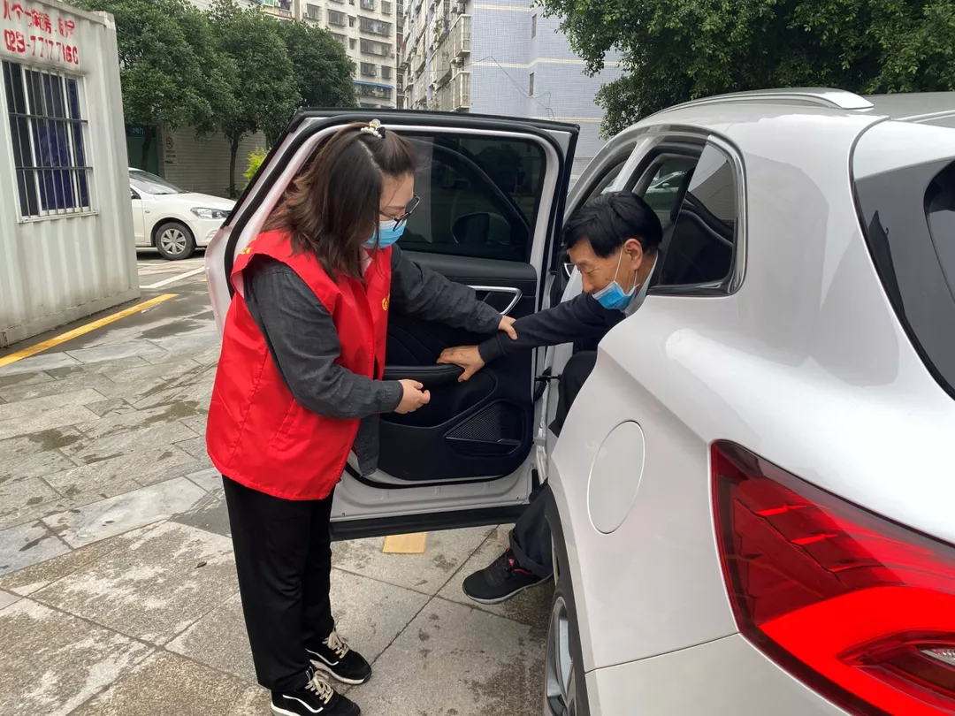 ▲志愿者开车接送老人前往曾家卫生院