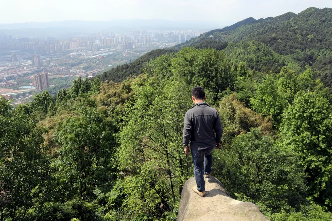 ▲虎峰山巅鸡冠石上鸟瞰科学城。雷键 摄