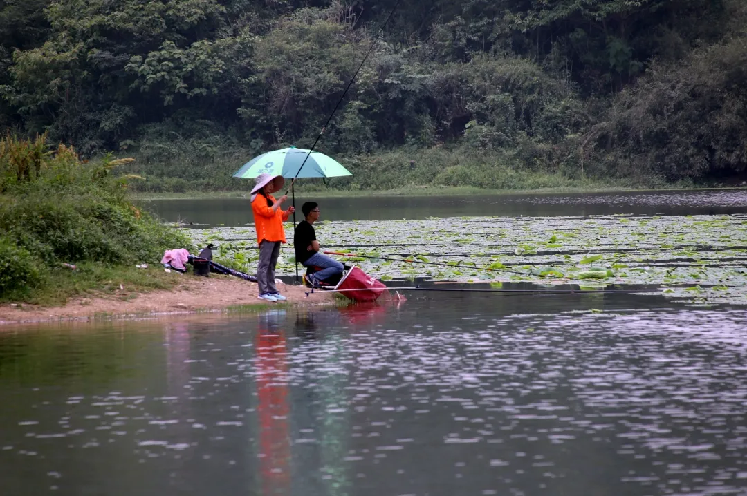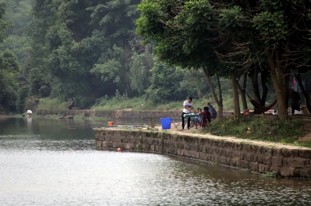 ▲市民在莲花湖畔垂钓烧烤。雷键 摄