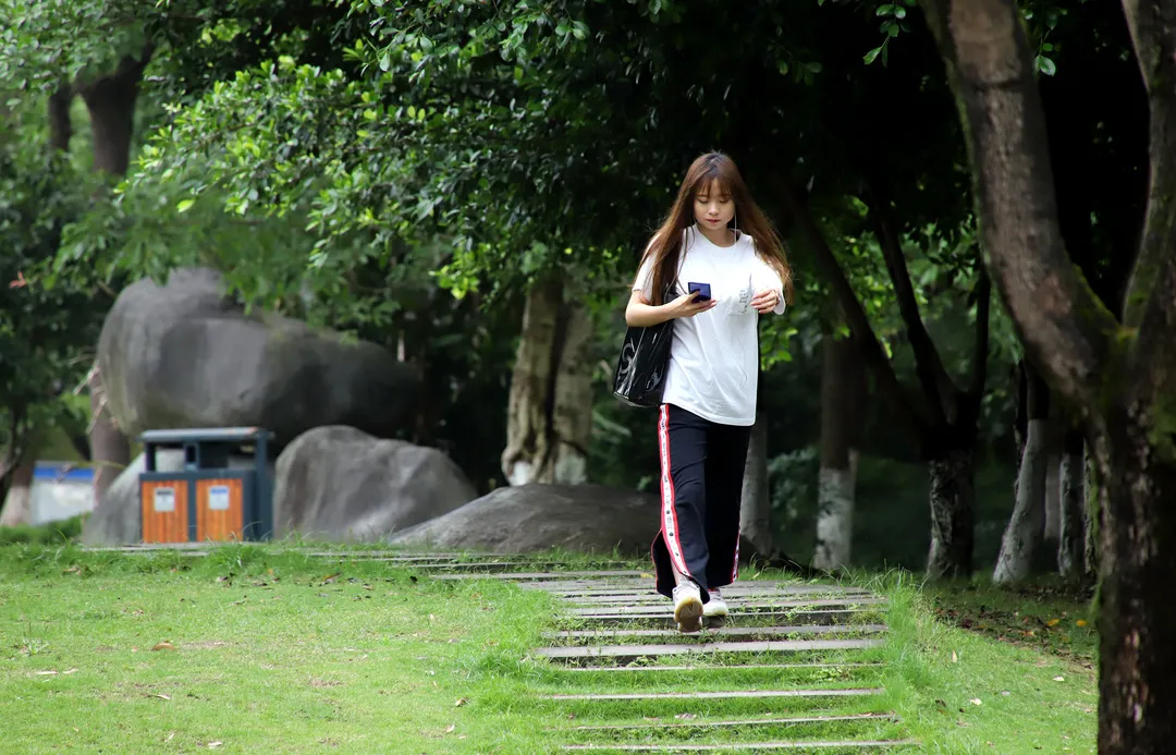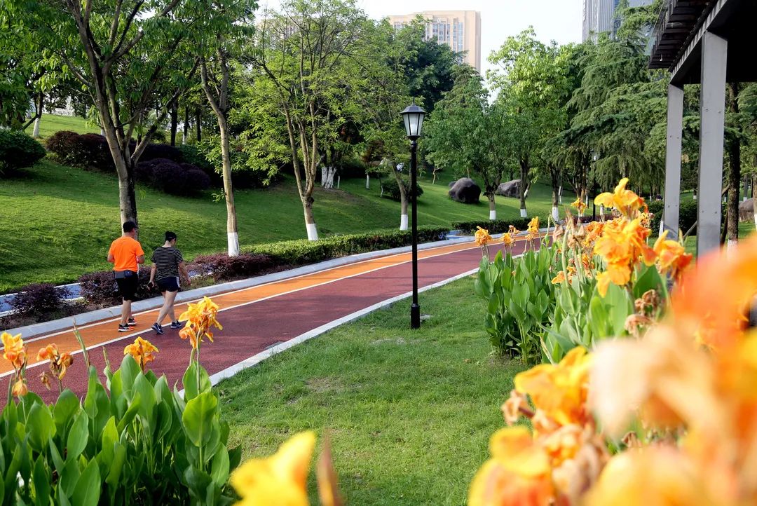 ▲市民在鸟语花香的大学城中央公园散步。雷键 摄