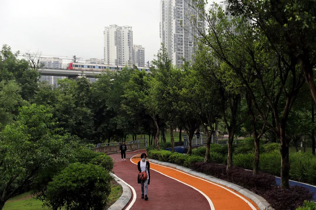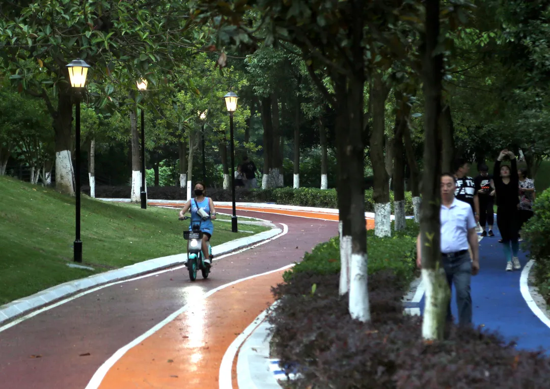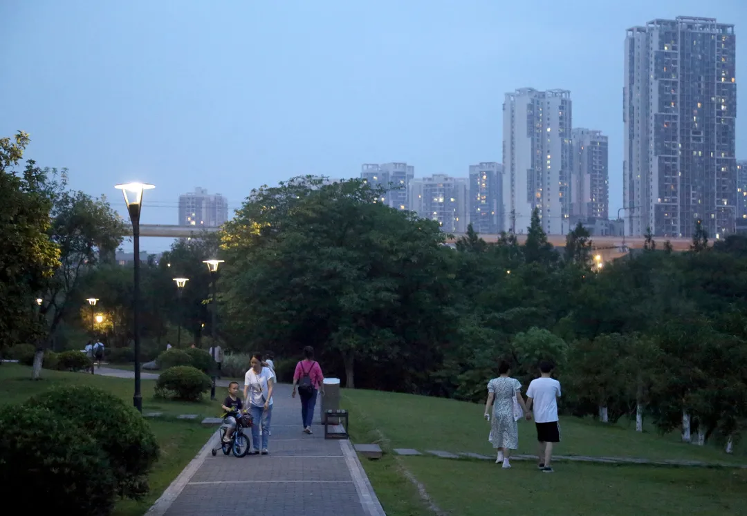 ▲傍晚,市民在公园散步。雷键 摄