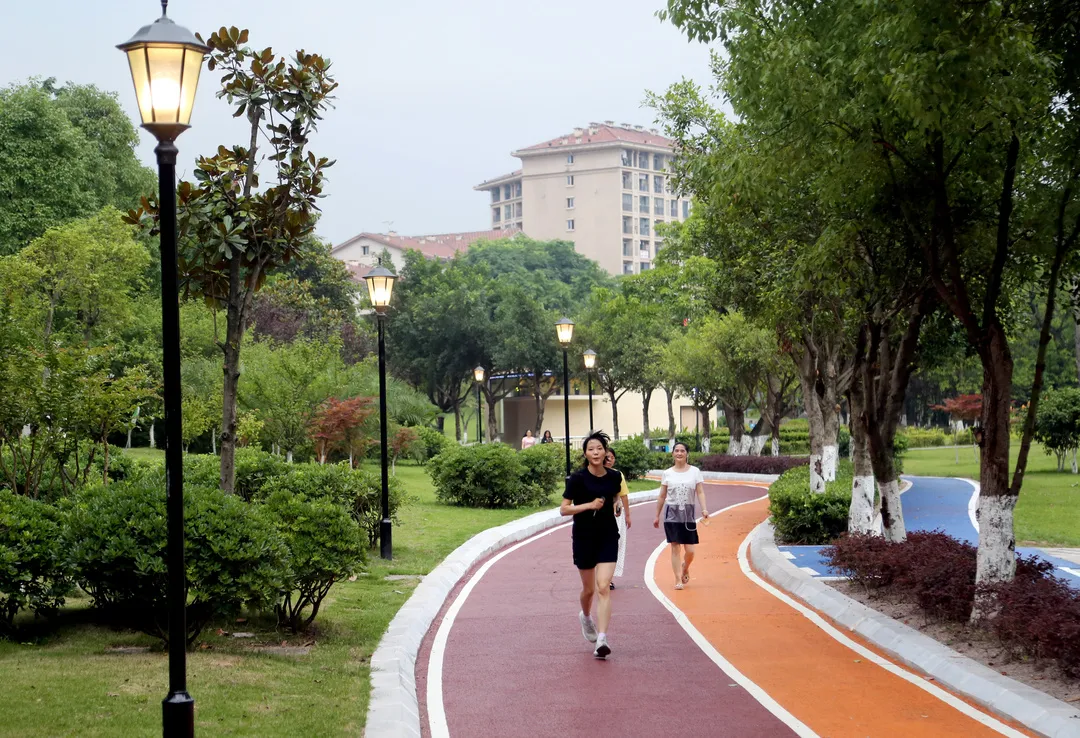 ▲傍晚,市民在公园彩色步道上跑步。雷键 摄