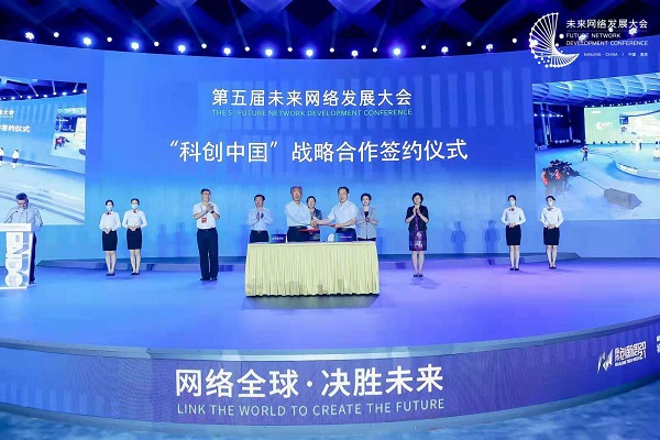 开幕式上,期待已久的紫金山实验室重大成果发布,紫金山实验室主任兼首席科学家刘韵洁院士发布“全球首个骨干网级可编程交换设备操作系统”和“未来网络试验设施多云交换平台”,紫金山实验室副主任兼首席科学家尤肖虎教授发布“5G网络数据采析与性能追踪系统”。国家重大科技基础设施(CENI)开放合作启动并举行了“科创中国”战略合作签约仪式。此次发布的系列成果含金量高、应用性广、引领性强,为实现网络强国、制造强国、航天强国等重大战略目标夯实“未来根基”、驱动“未来引擎”。大会期间还举办了重要嘉宾纪念活动——“未来之舟”,寓意“舟行于水,乘风破浪,创新领航,相约未来”。