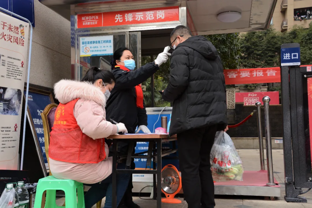 ▲疫情期间,物业认真检查进入小区的居民。学智社区供图