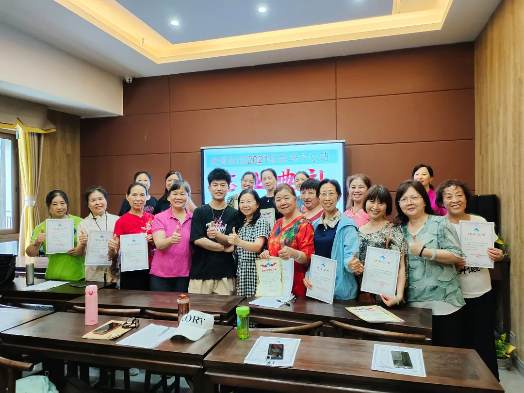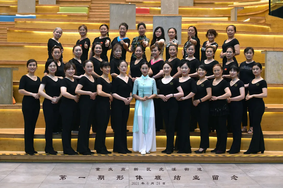 ▲普通话、声乐、摄影、形体兴趣班毕业合影。虎溪街道供图