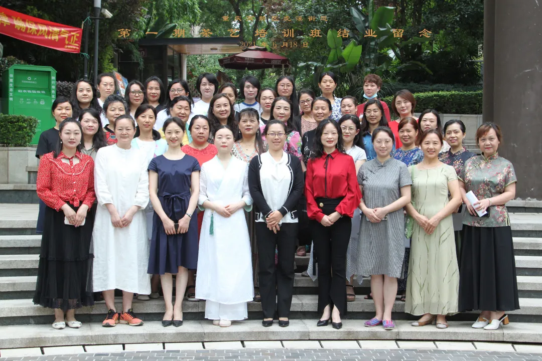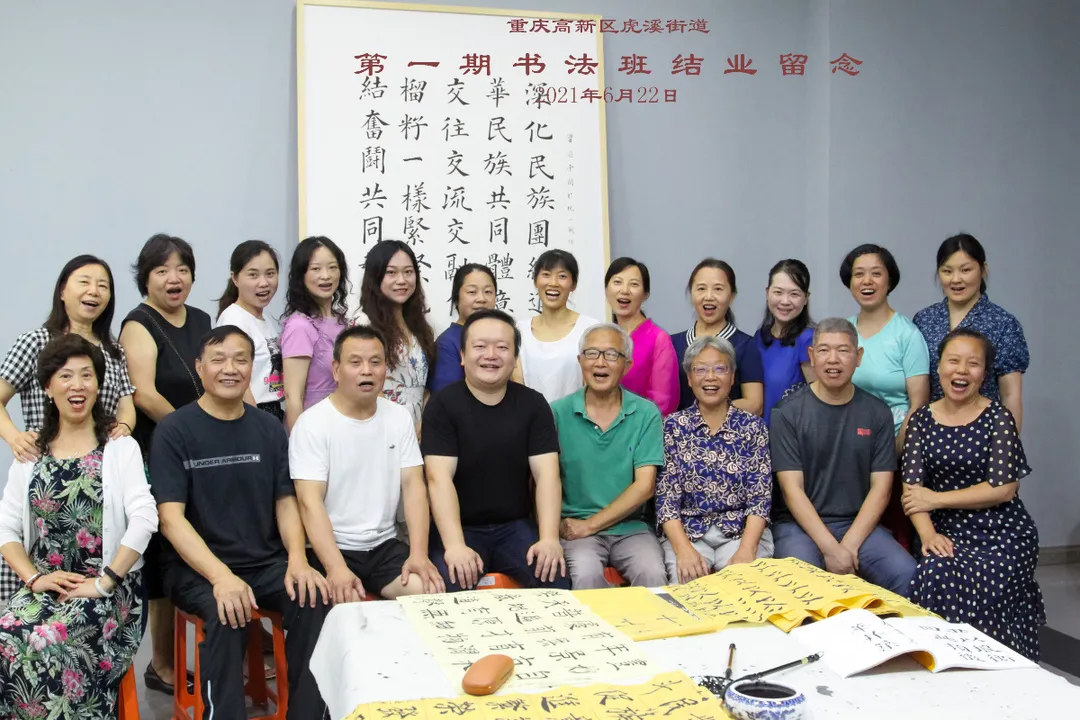 ▲茶艺、书法兴趣班毕业合影。虎溪街道供图