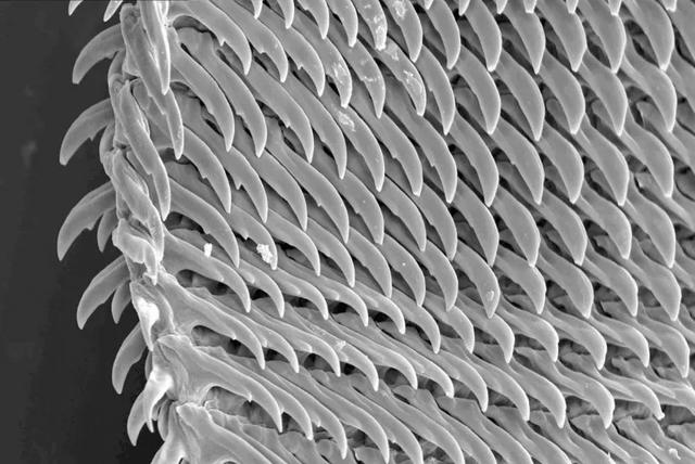 电镜下蜗牛密集的牙齿