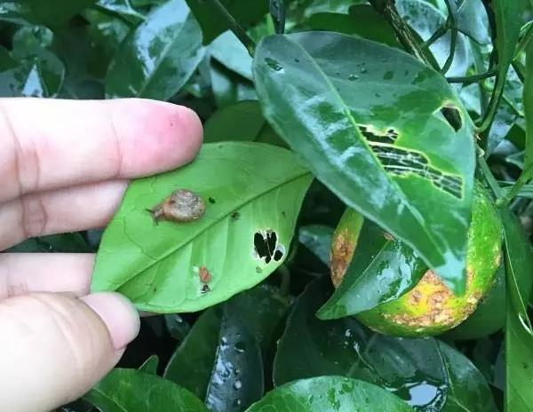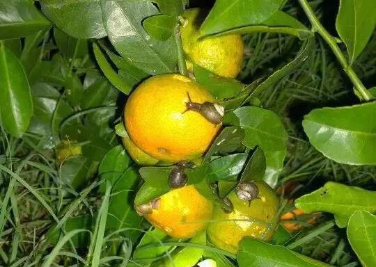 别看蜗牛一副呆呆萌萌、行动迟缓的样子,祸害起柑橘来可一点都不含糊。