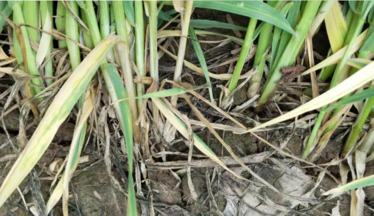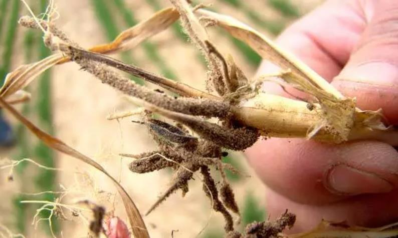 小麦根腐病是土传病害,主要危害地下根茎部位,严重时叶片会枯死,根系也会腐烂,随着根系的腐烂,地上部位也会枯死。