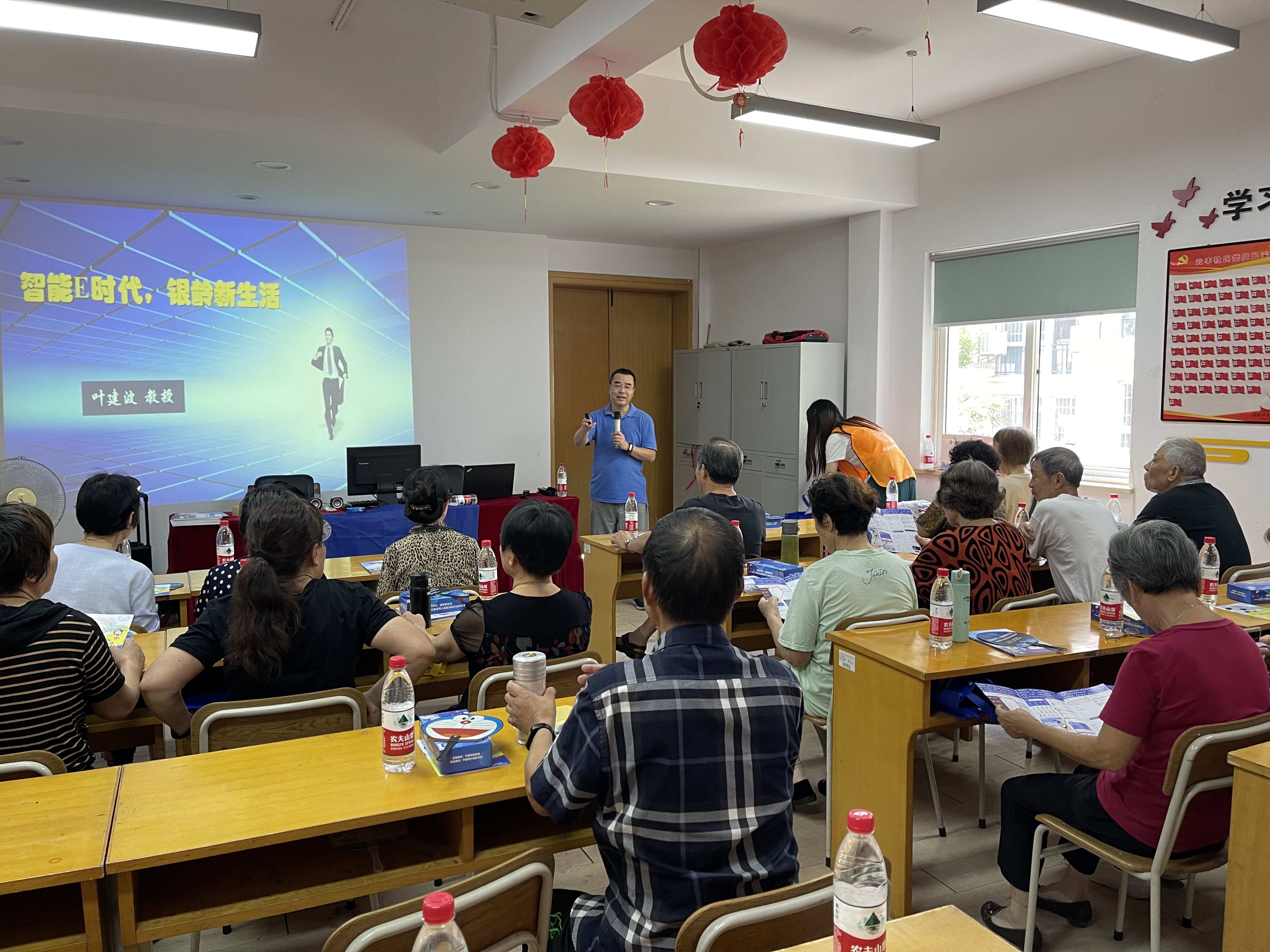“叶老师,这个怎么扫啊,你教我一下啊。”“小同学,你能告诉我电子医保这个怎么用啊?”2021年9月17日上午9点,在宁波市海曙区白云街道云丰社区里,一群老年人热切的声音此起彼伏“智能E时代,银龄新生活——社区老年人智能体验式应用教学”活动,正在这顺利开展。近30位老人来到云丰社区居委会上课,由浙江工商职业技术学院的叶建波教授为老人们带来了一个生动亲切、通俗易懂的课堂。