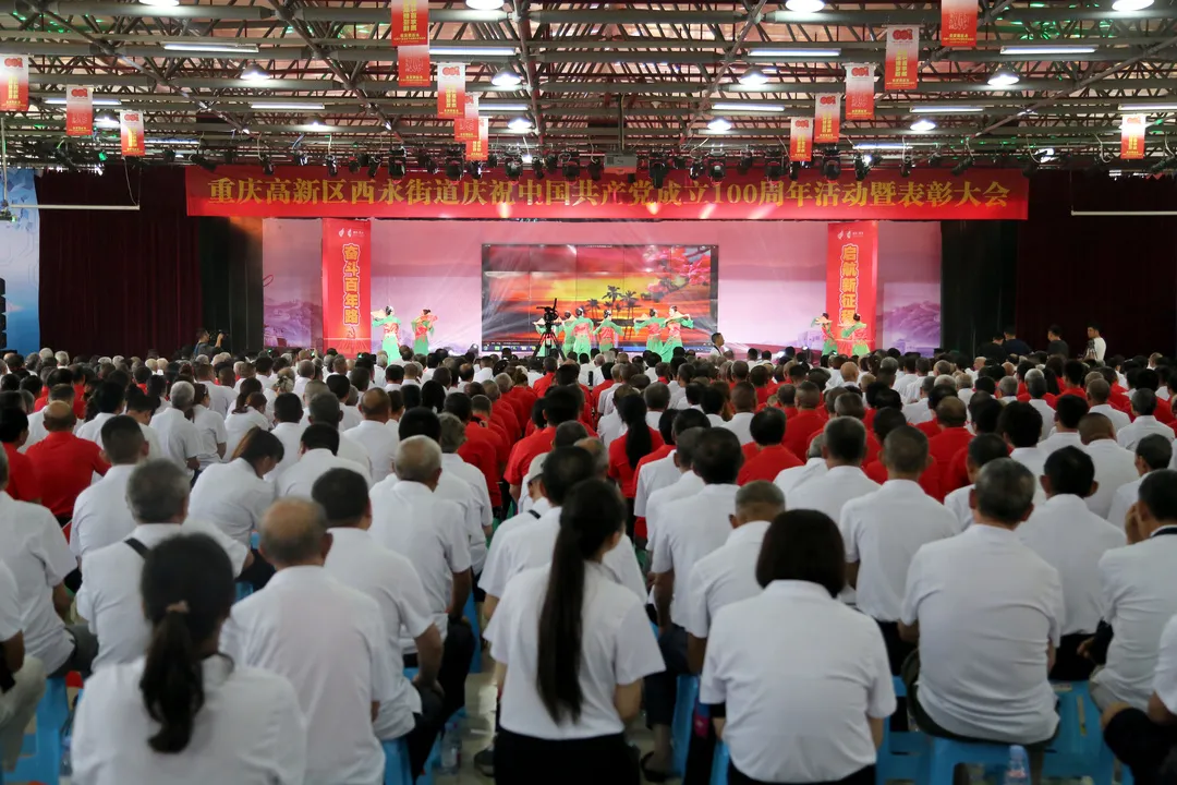 6月30日,重庆高新区虎溪街道开展庆祝中国共产党成立100周年“群众大舞台”联庆活动。通过“永远跟党走”群众狂欢、为“两优一先”颁奖、颁发50年党员纪念章、结合精品节目汇演等形式,展现辖区居民挚热情感。