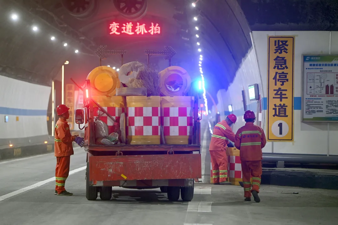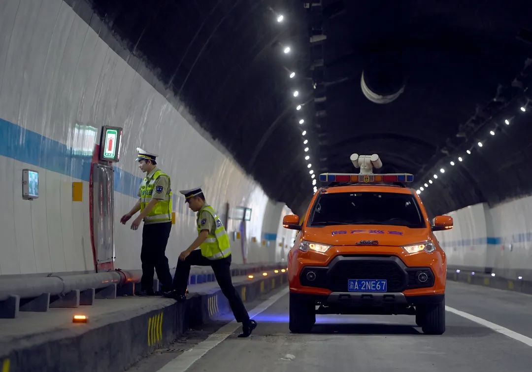 ▲通车前,执法人员检查隧道内设备。雷键 摄