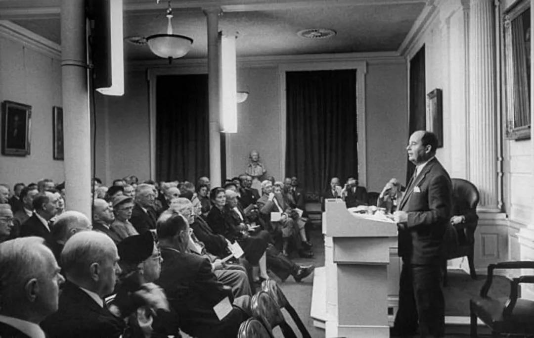 1957年冯·诺伊曼在美国哲学学会的演讲。图片来源:Alfred Eisenstaedt摄