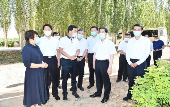 宁夏回族自治区党委书记陈润儿(右二)、自治区党委副书记陈雍(右一)调研葡萄酒产业,在立兰酒庄视察