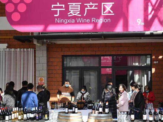 闽宁镇红酒街上络绎不绝的消费者葡萄酒是有红色基因的。