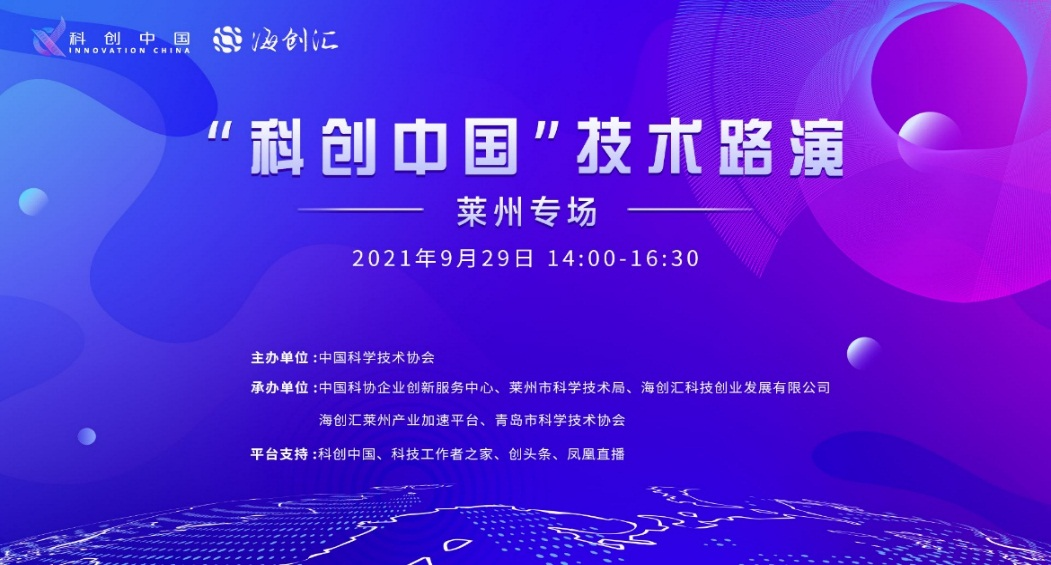 9月29日下午,由中国科学技术协会主办,中国科协企业创新服务中心、莱州市科学技术局、海创汇科技创业发展有限公司、海创汇莱州产业加速平台、青岛市科学技术协会共同承办的“科创中国”技术路演——莱州专场,以线上线下相结合形式成功举行。近32.7万人次通过“科创中国”、科技工作者之家、海创汇云、凤凰网等平台观看路演。