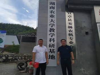 8月28日,湖南农业大学机电工程学院院长吴明亮教授、湖南省农机事务中心党组书记王洪明一行到宜章安林农机专业合作社共同为“湖南农业大学教学科研基地”揭牌。