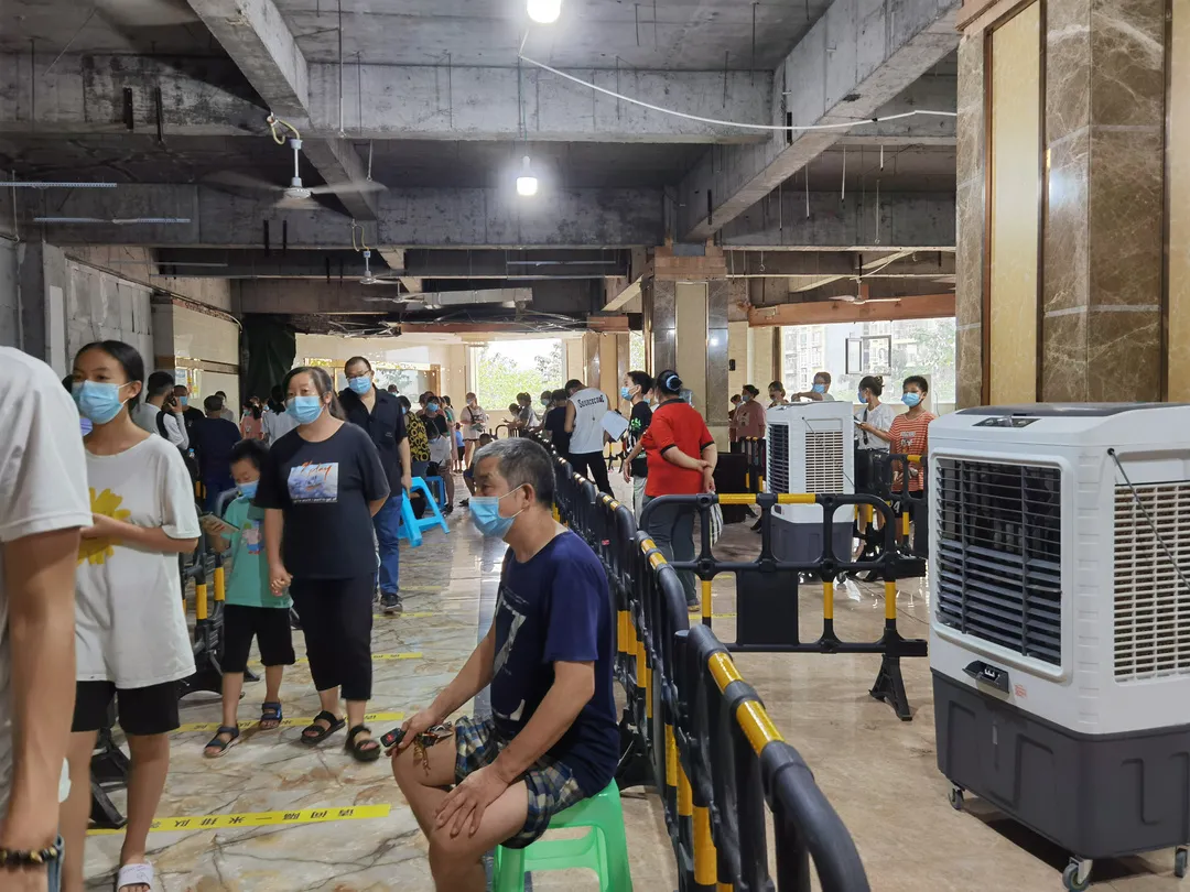 “马上搬几个大风扇过来,不能让群众中暑!”