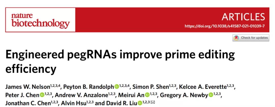 该研究以:Engineered pegRNAs improve prime editing efficiency 为题,发表在了 Nature Biotechnology 期刊上【2】。