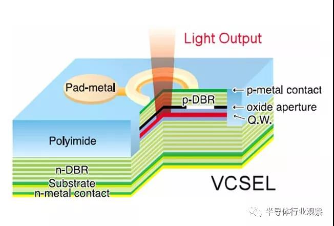 VCSEL(Vertical-cavity Surface-emitting Laser),垂直腔面发射激光器,是以半导体材料为工作物质发射激光的器件,最初用于光通信领域。