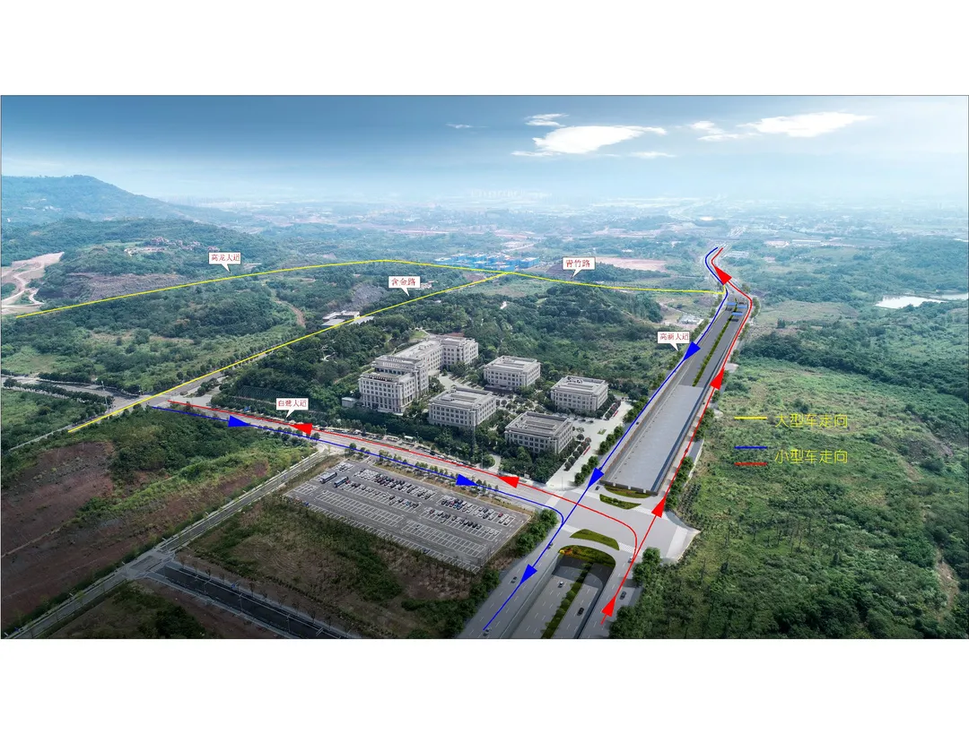 第一阶段——双侧辅道施工:采用围挡全封闭南北侧辅道,主道通行不受影响。南侧辅道封闭时间为2021年8月17日至2021年10月31日;北侧辅道封闭时间为2021年8月22日至2021年10月31日。届时由青龙咀立交前往重庆高新区管委会的车辆需经青竹路、含金路绕行至管委会公共停车场。