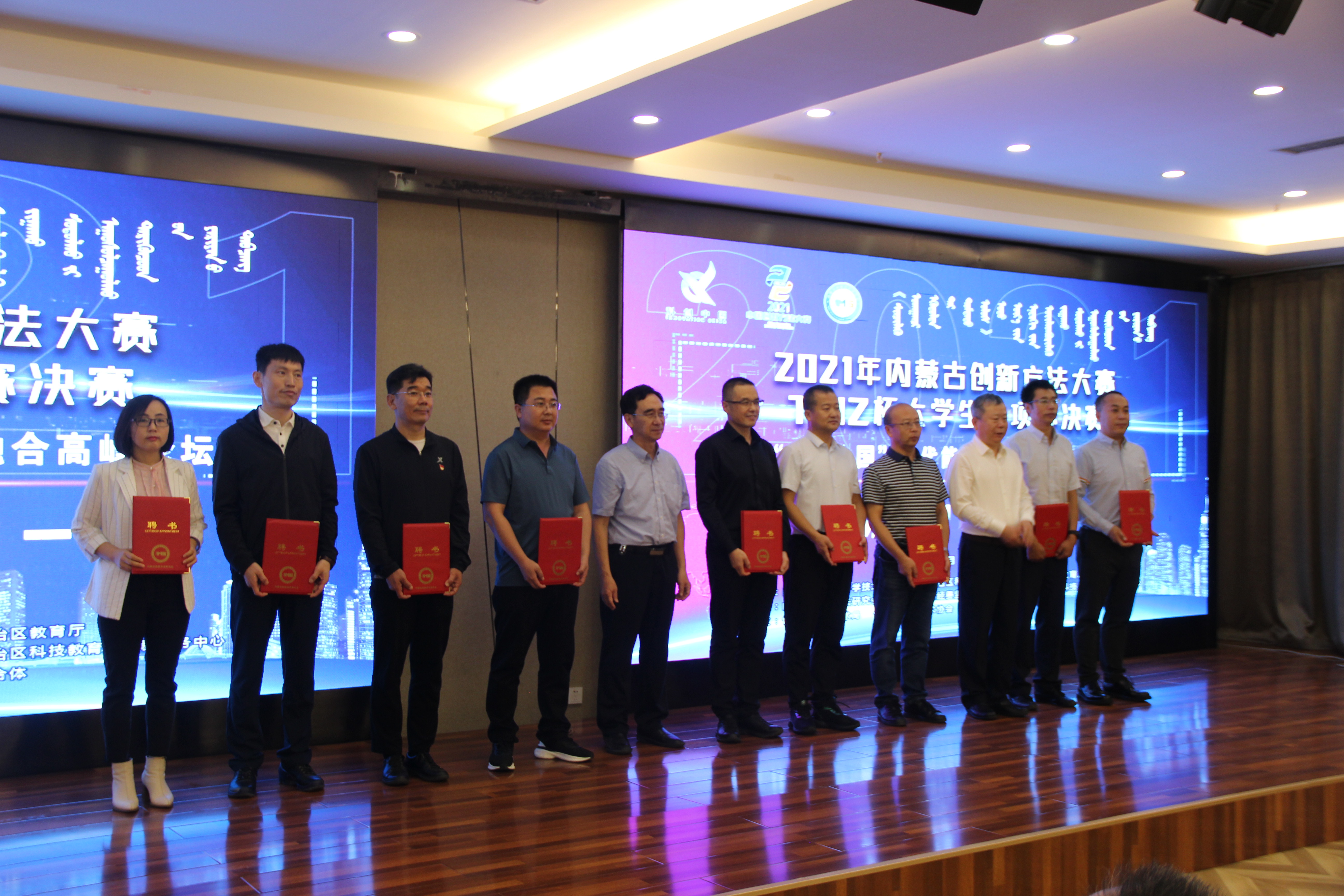 大赛启动仪式上,出席大赛领导为担任本届大赛决赛的评审专家颁发了聘书,为参赛高校联络员颁发了优秀联络员证书。大赛决赛答辩评审专家组组长、内蒙古工业大学教授文宗川代表全体评审专家宣读了专家承诺书,大赛联络员代表锡林郭勒职业学院布赫宣读了倡议书。