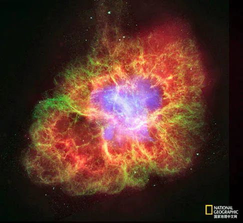 蟹状星云的合成图。蟹状星云就是一个超新星的残骸,而它的核心就是脉冲星。