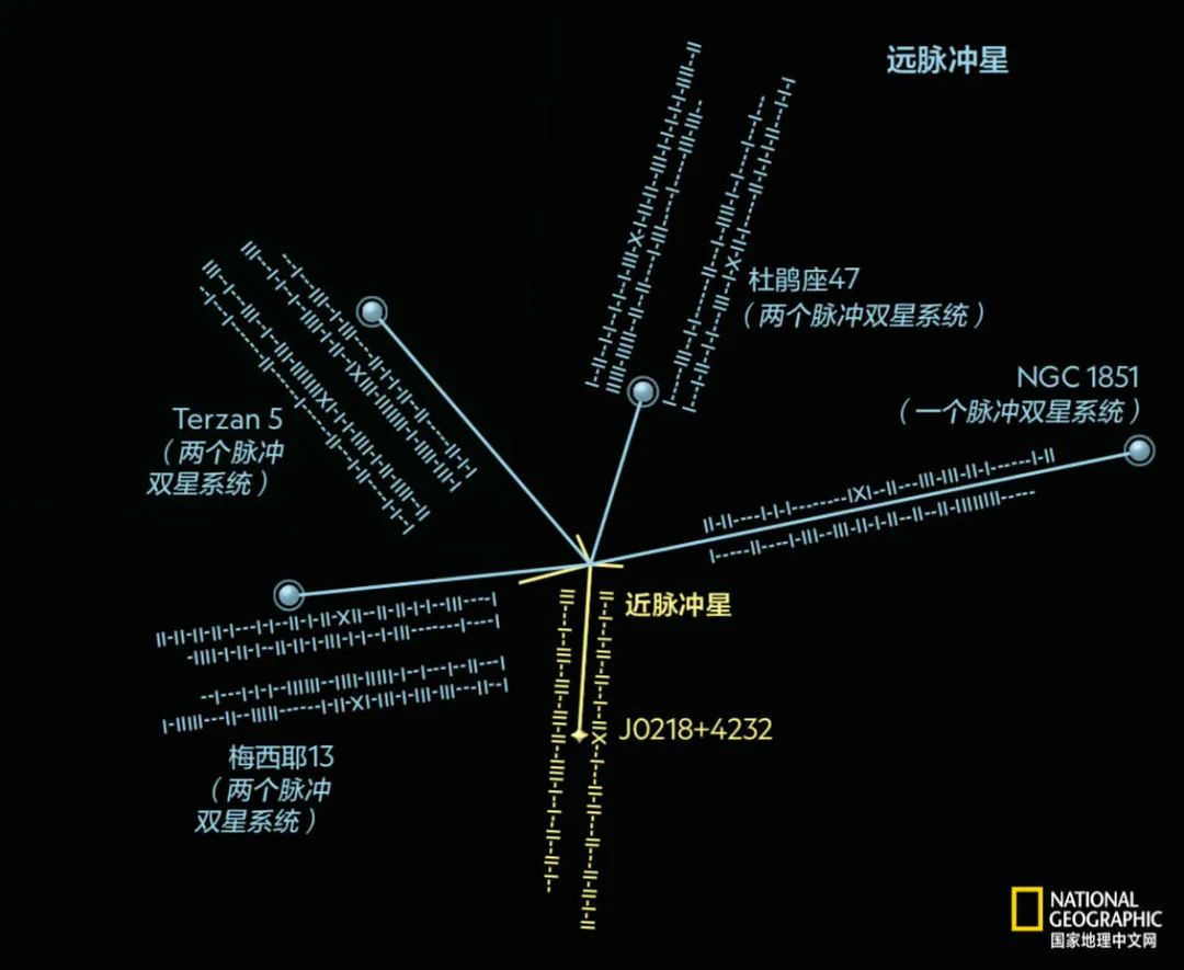 此外,斯科特还引入了另外一套路标:环绕银河系运行——球状星团中的脉冲星。球状星团是早于银河系形成的古老星球团,是名副其实的毫秒脉冲星“制造厂”。