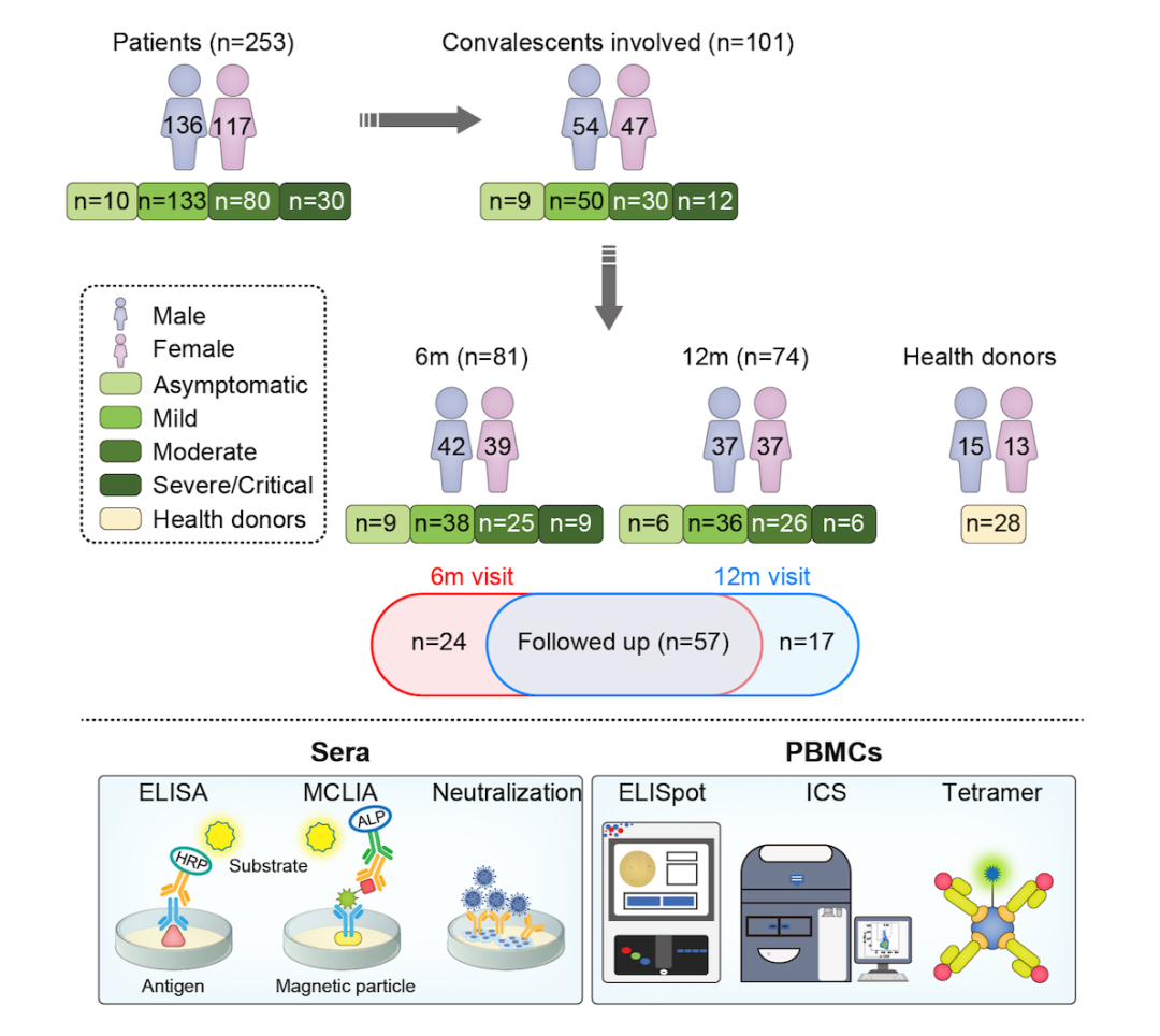 新冠康复者抗体和T细胞免疫水平统计分析示意图