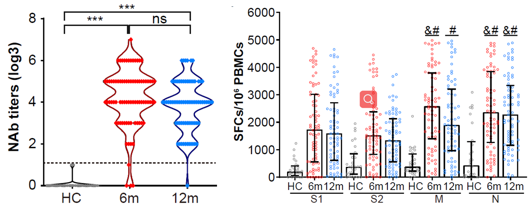 “我们发现,发病后12个月与6个月相比,康复者的病毒特异性记忆T细胞百分比并没有显著下降。”刘军说,这意味着,免疫记忆仍将持续。