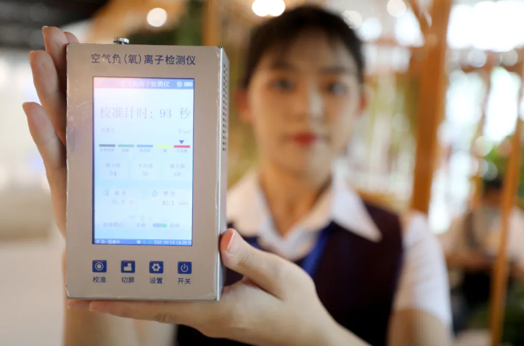 ▲选手展示空气负(氧)离子检测仪。雷键 摄